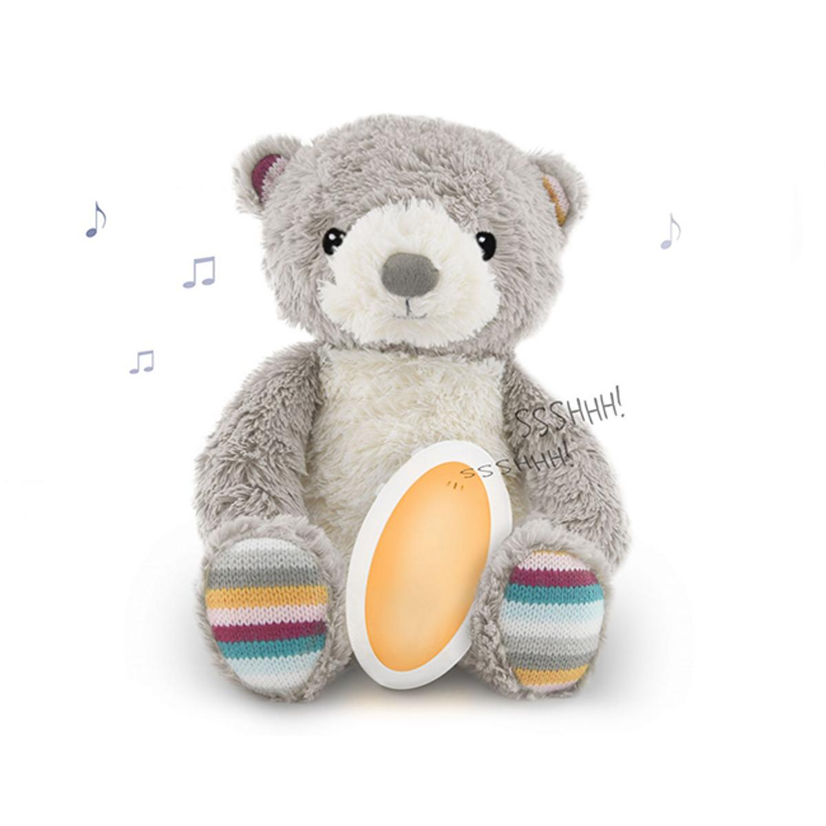 Bruno er en herlig myk bamse som hjelper babyen med å roe seg med ved sengetid. Den kan spille beroligende lyder og har et behagelig oransje nattelys som skaper et betryggende sovemiljø for den lille. Bruno har også stemmeopptak som en egen funksjon, slik at du kan spille av en liten historie eller sang med din egen stemme.