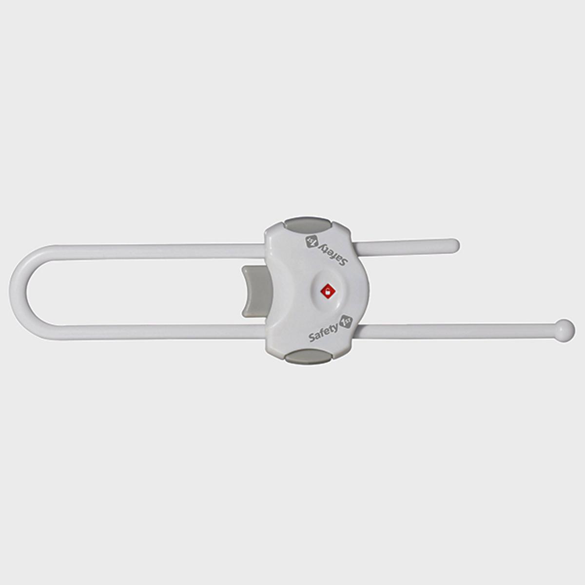 Safety 1st skaplåsen er her for å gi deg trygghet på at eventuelle skadelige produkter som du kan ha på badet eller på kjøkkenet er utenfor rekkevidde. Den kommer med SecurTech indikator som tydelig viser om den er låst eller ikke (en grønn diamant med en hvit hengelås vises). Denne låsen kan brukes med alle typer håndtak så lenge du prøver å sikre et sett med dører, og ikke bare en dør. Enheten må være festet tett til håndtakene eller sporet gjennom hvert håndtak. Safety 1st cabinet slide lock har en press-og-trekk lås som er vanskelig for barn å åpne.