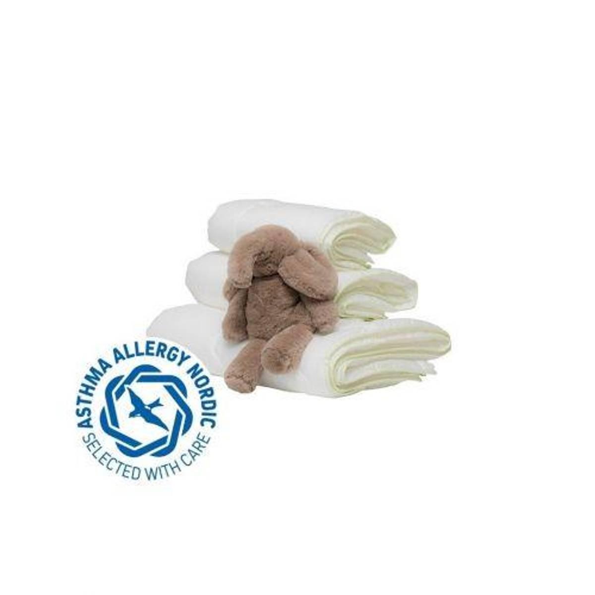 En lav pute for baby, og markedets eneste fiberpute anbefalt av Asthma Allergy Nordic. Fiberen er nøye valgt for sin renhet og bommulstrekket er valgt på grunn av dens fine vevestruktur som reduserer middens mulighet til å etablere seg i puten. Den er i tillegg lett å vaske og tørker fort.