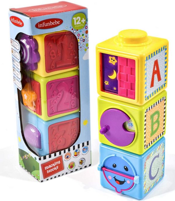 Stable klosser 3 stk. med flere forskjellige aktiviteter, klossene er i livlige farger som visuelt stimulerer.
