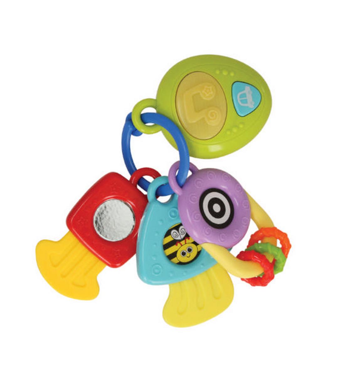 3 store nøkler som er dimensjonert for små hender i bitevennlige materialer.