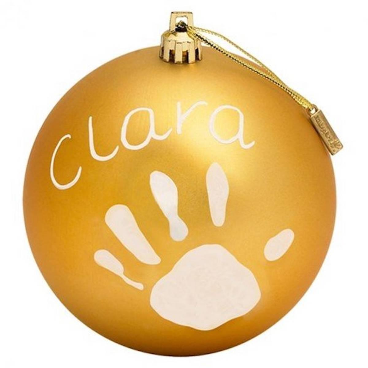 - enkelt å lage julekulen med babyens navn og håndtrykk