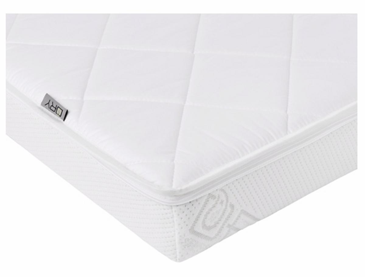 Topplokket i DRYzleep Barnemadrass er laget av et spesialstoff (50%polyerster/50%bomull) som absorberer fukt, sprer fukten utover og transporterer den videre. Den tørker hurtig. Stretchen er elastisk og meget åpen for at fukt transporteres videre. Kan også tas av og vaskes på 60 grader.