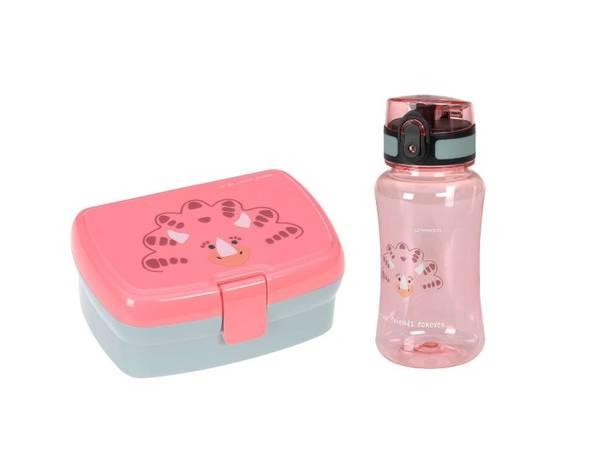 Lunsjsettet består av en matboks og en drikkeflaske og kommer i det søte dyredesignet til About Friends-kolleksjonen. Tofarget matboks er utstyrt med et avtakbart brett for organisering av matboksen og diverse snacks. Den er BPA-fri , robust og enkel å åpne og lukke selv for barn .