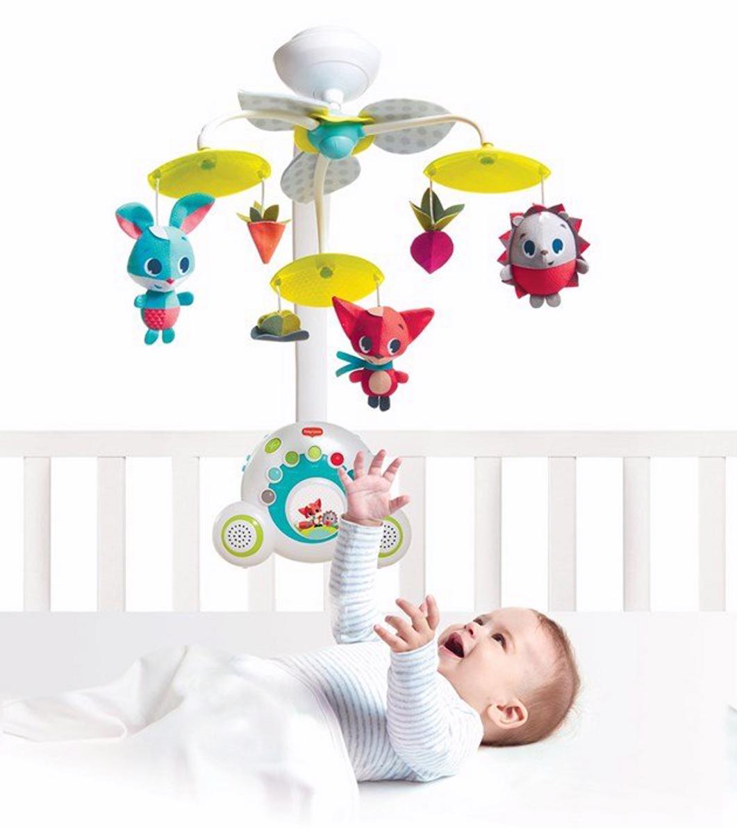En søt og morsom uro fra Tiny Love. Uroen kan brukes som en sengeuro, eller som en portabel musikkspiller. Den kan spille 18 beroligende eller lekne melodier, som underholder barnet. Uroen har en lekearm med søte figurer som snurrer. Når det begynner å bli mørkt, kan du slå på den innebygde nattlampen, som bidrar til å gi barnet en trygghetsfølelse.