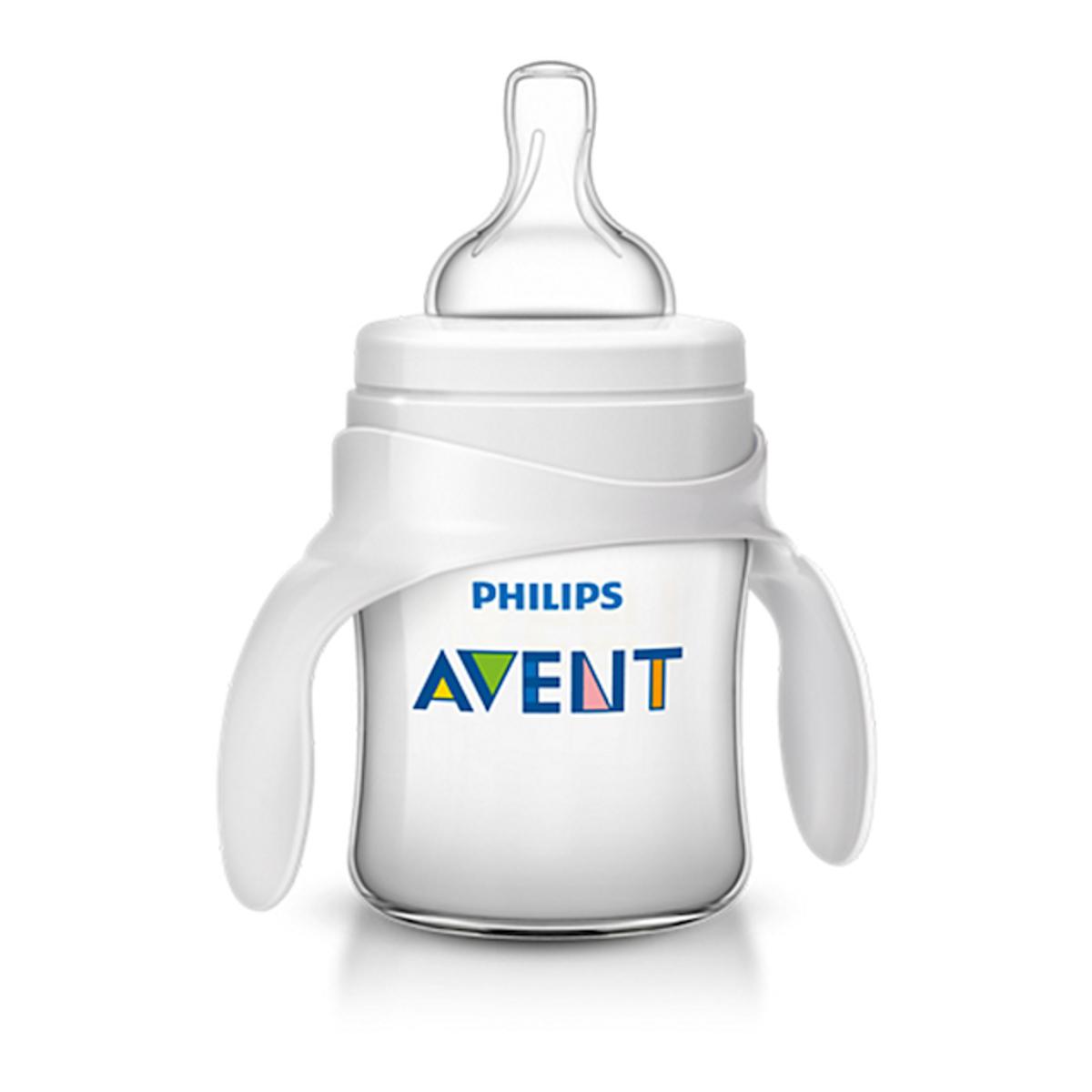 Philips Avent Trainer Cup Classic er en overgangskopp med flaskesmokk, slik barnet kjenner det fra tåteflasken. Drikkekoppen er en mellomting av en tåteflaske og en drikkekopp, og er en ideell overgang for barn som skal lære seg å drikke av kopp. Med håndtakene vil babyen kunne holde flasken selv og samtidig drikke fra den velkjente smokken. Anbefalt fra 4 måneder og oppover.